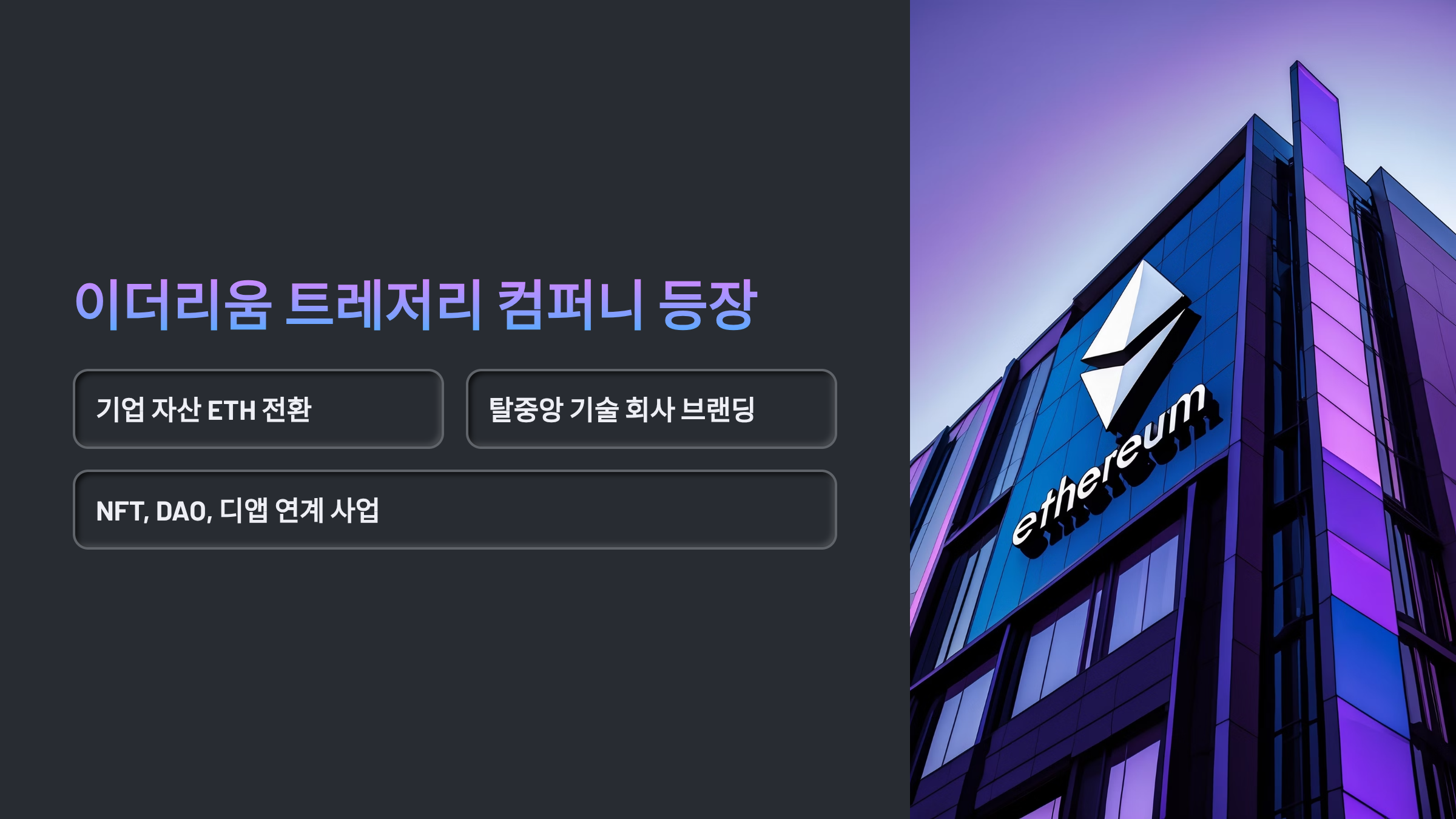 이제 일부 기업들이 ‘이더리움 트레저리 컴퍼니’로 전환하고 있습니다.