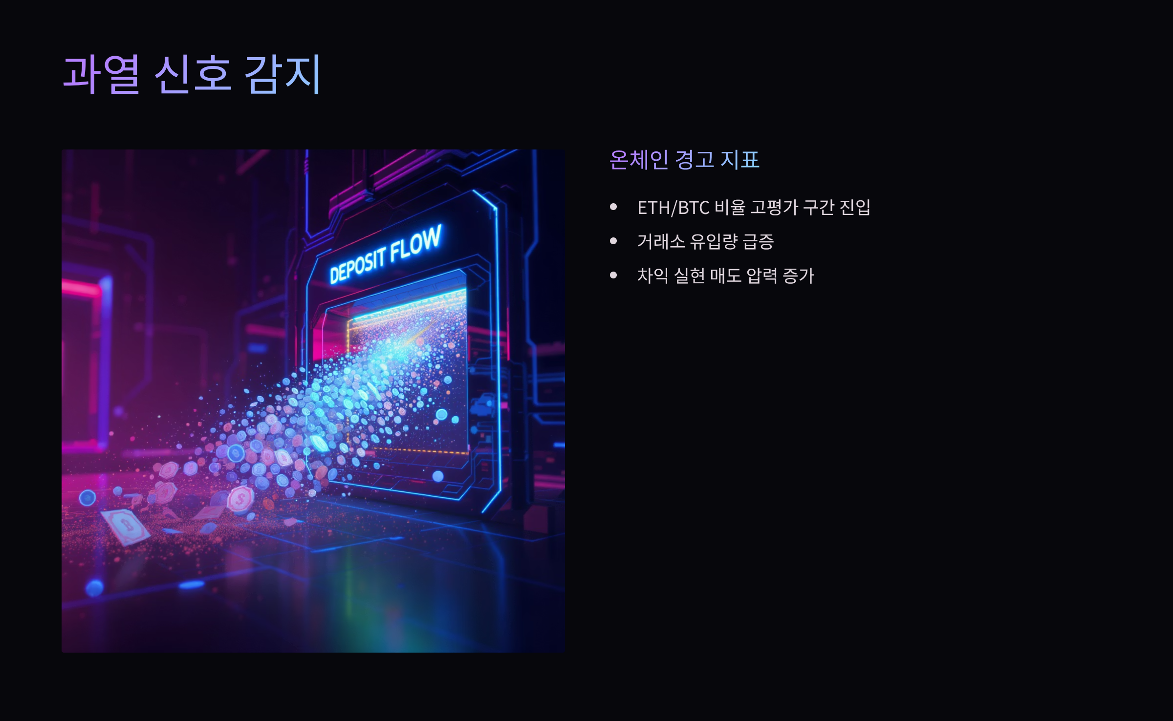 | ETH/BTC 비율 | 고평가 구간 진입 | 과거 조정 전례와 유사 |