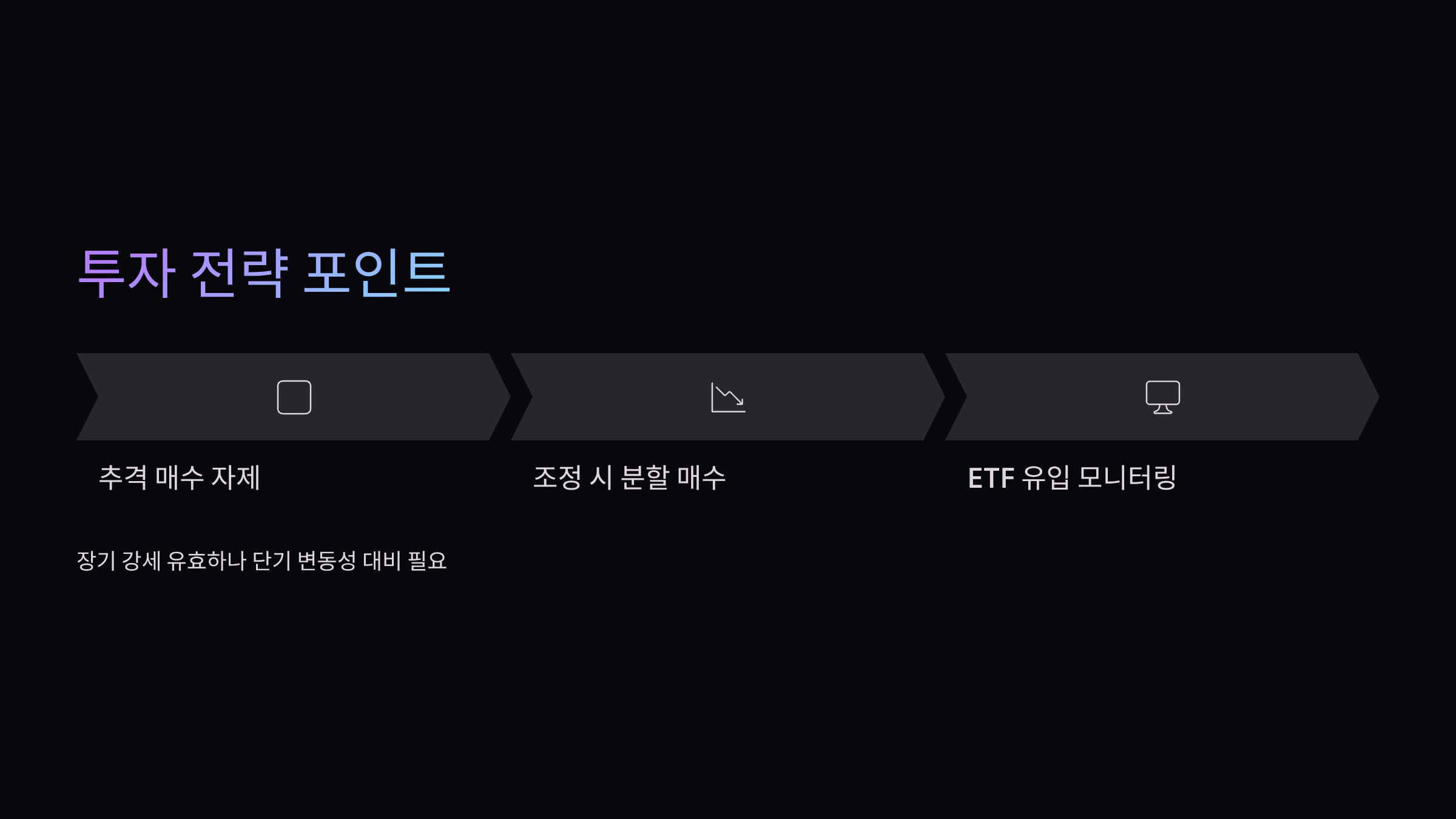 - 단기 조정 구간에서 분할 매수 기회 활용