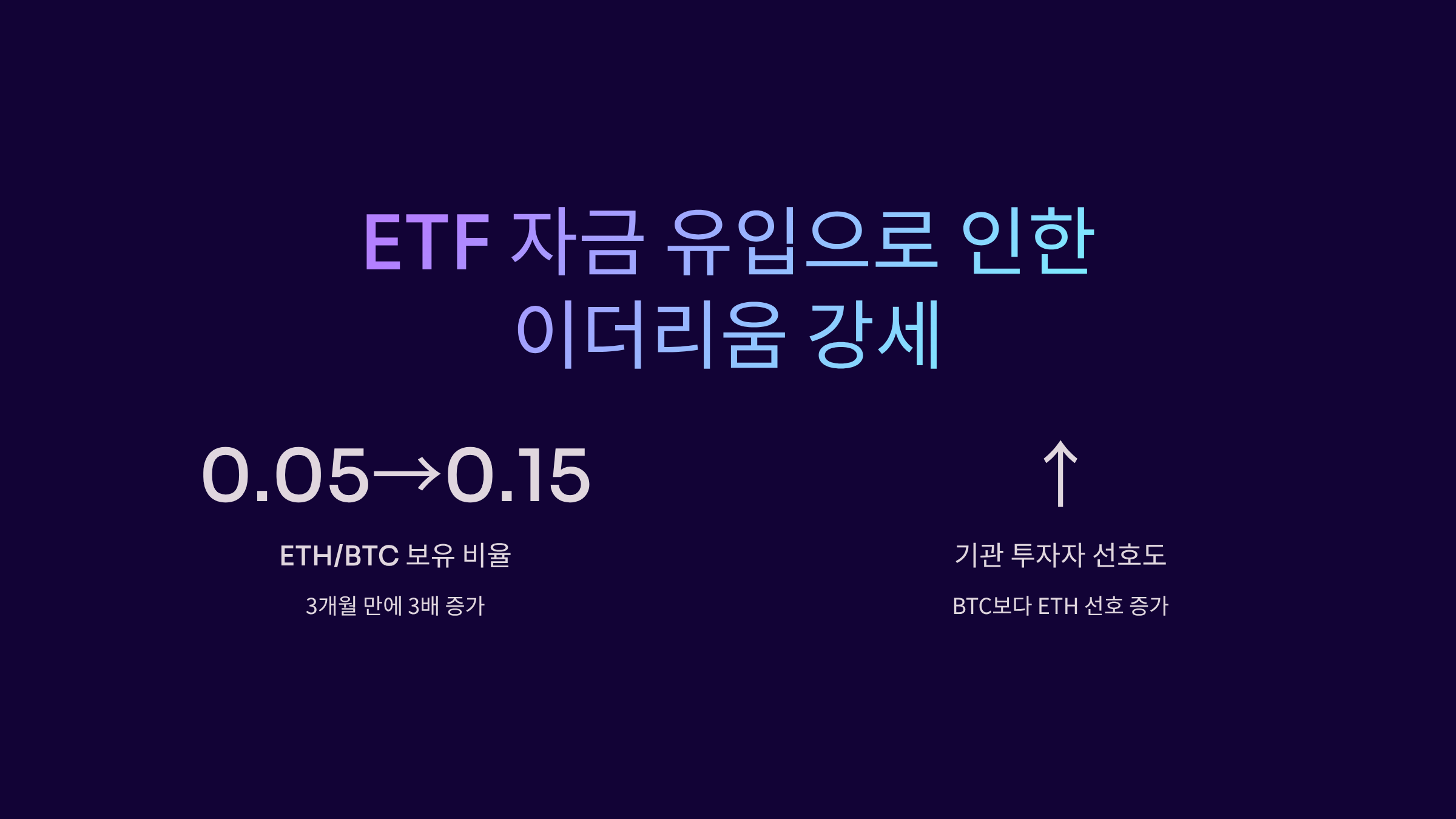 ETF 시장에서 ETH/BTC 보유 비율은 불과 3개월 전 0.05에서 현재 0.15로 급등했습니다.