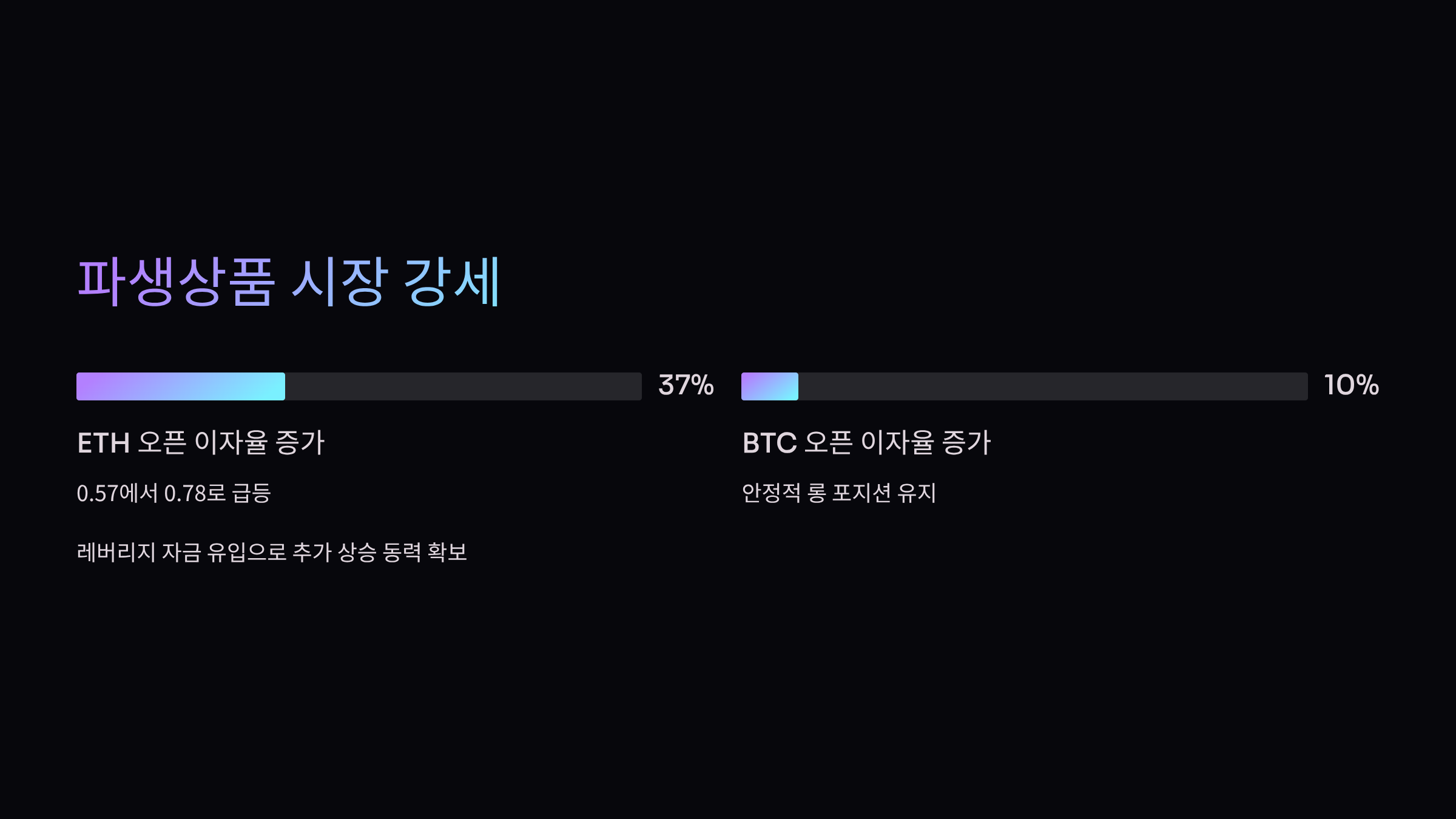이더리움은 파생상품 시장에서도 강세를 보이고 있습니다.