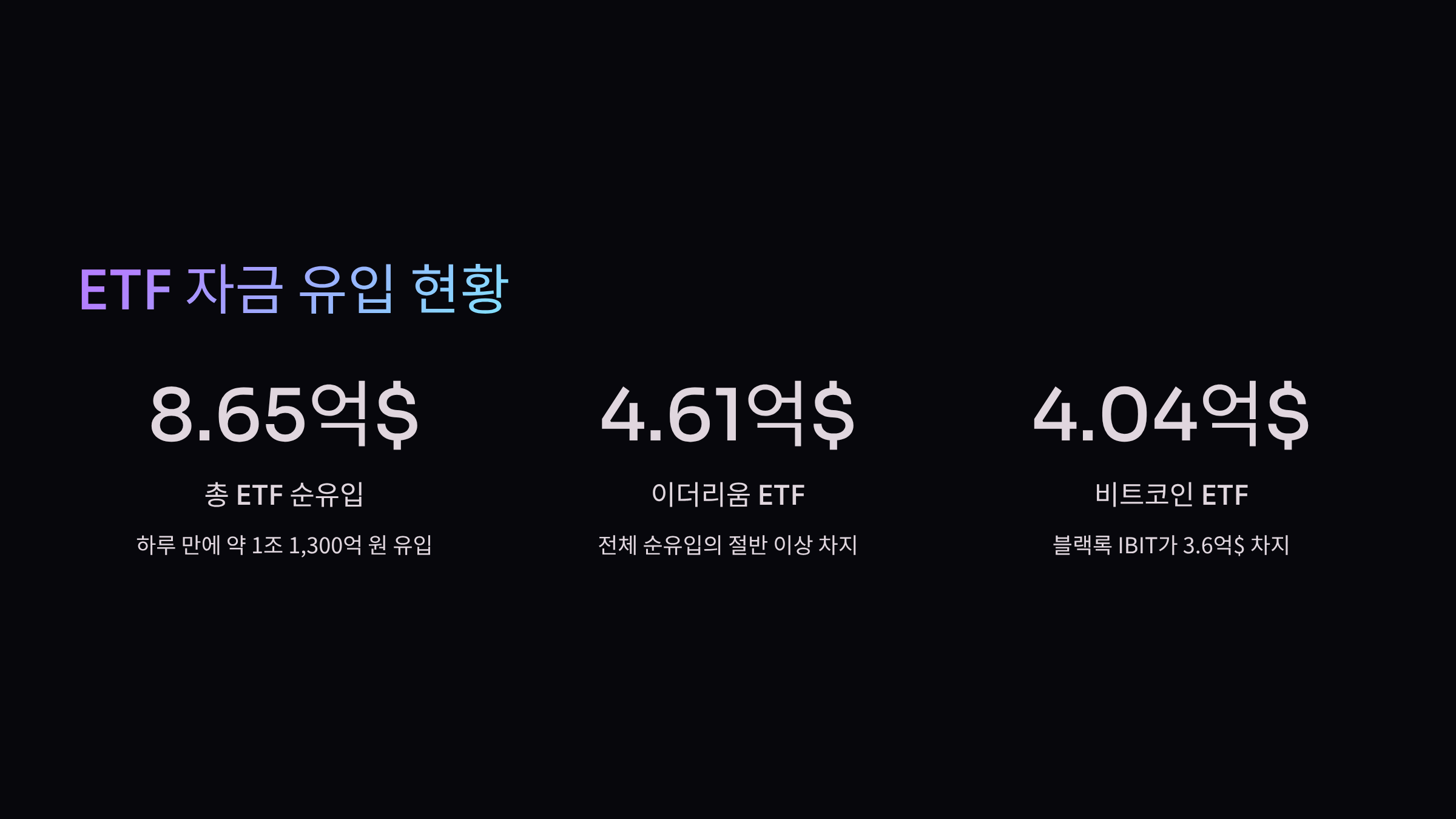 - 미국 현물 ETF 자금 유입 현황