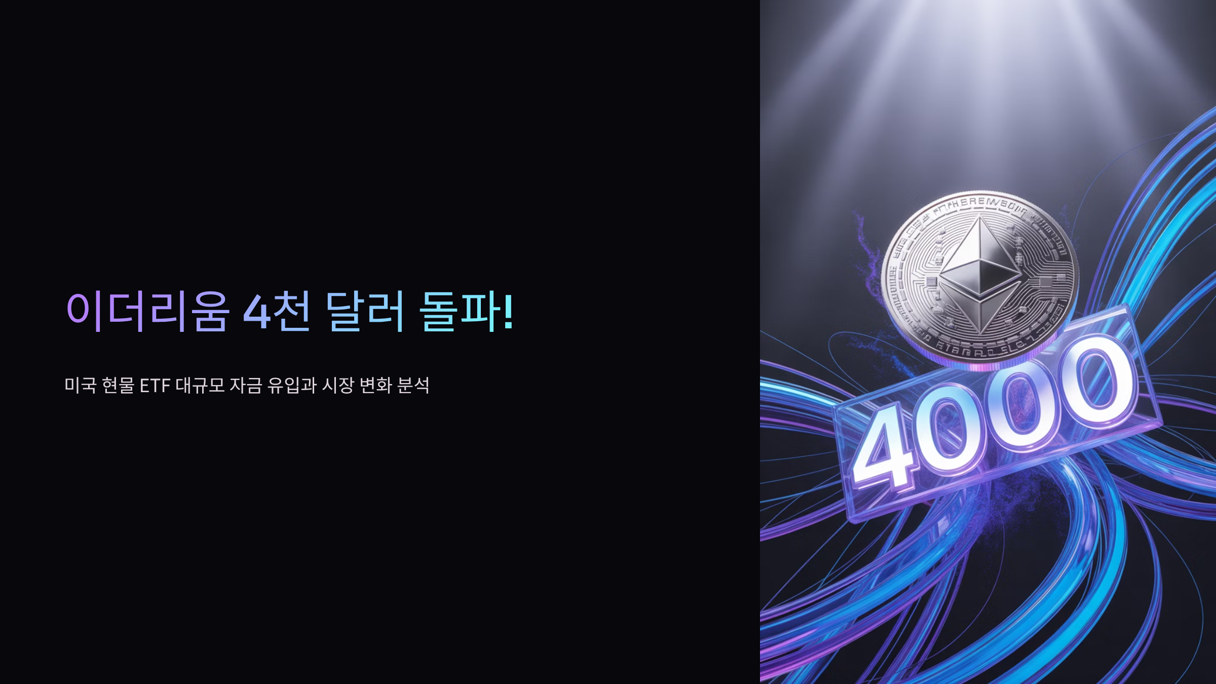 이더리움 4천 달러 돌파! 미국 현물 ETF 대규모 자금 유입과 시장 변화 분석