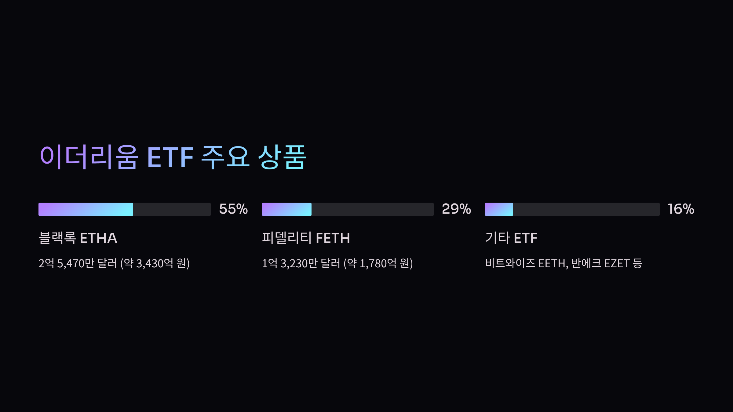 | ETHA | 블랙록 | 254,700,000 | 약 3,430억 원 |