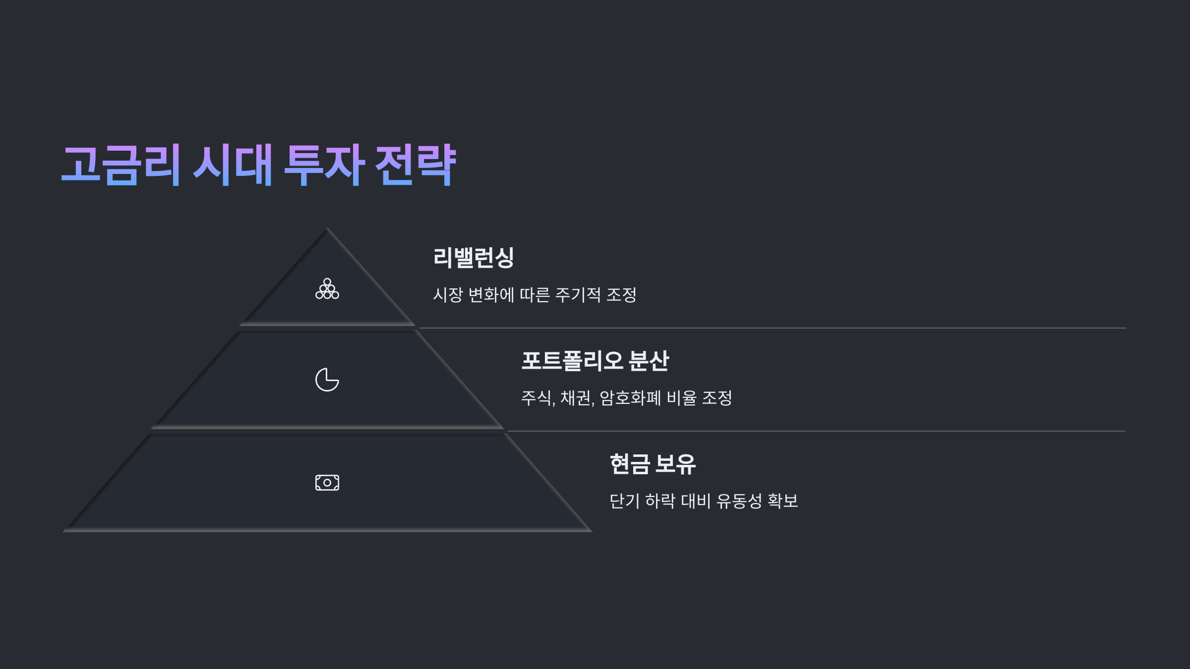 | 포트폴리오 분산 | 주식, 채권, 암호화폐 비율 조정 |