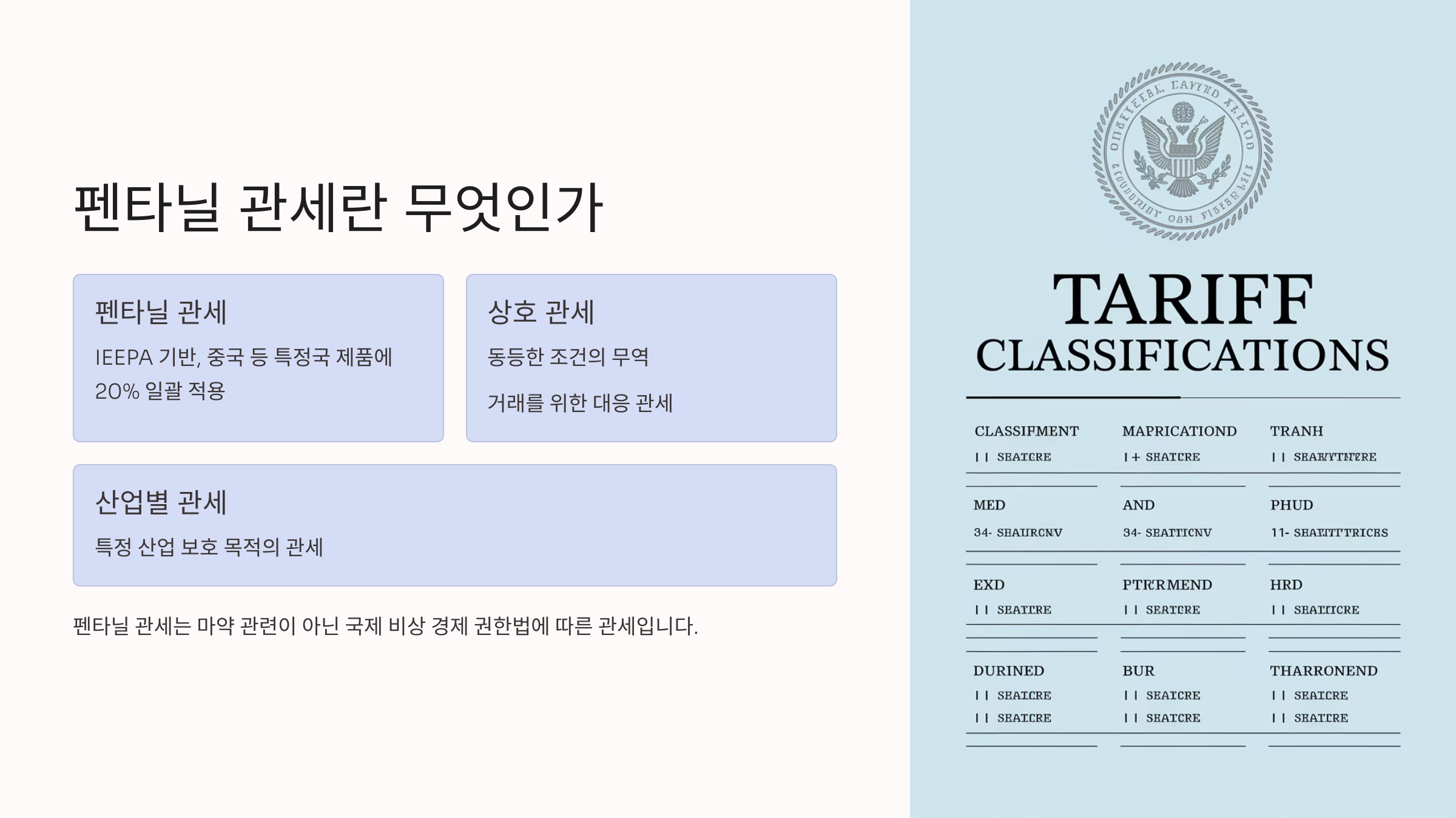 | 펜타닐 관세 | IEEPA 기반, 중국 등 특정국 제품에 20% 일괄 적용 |