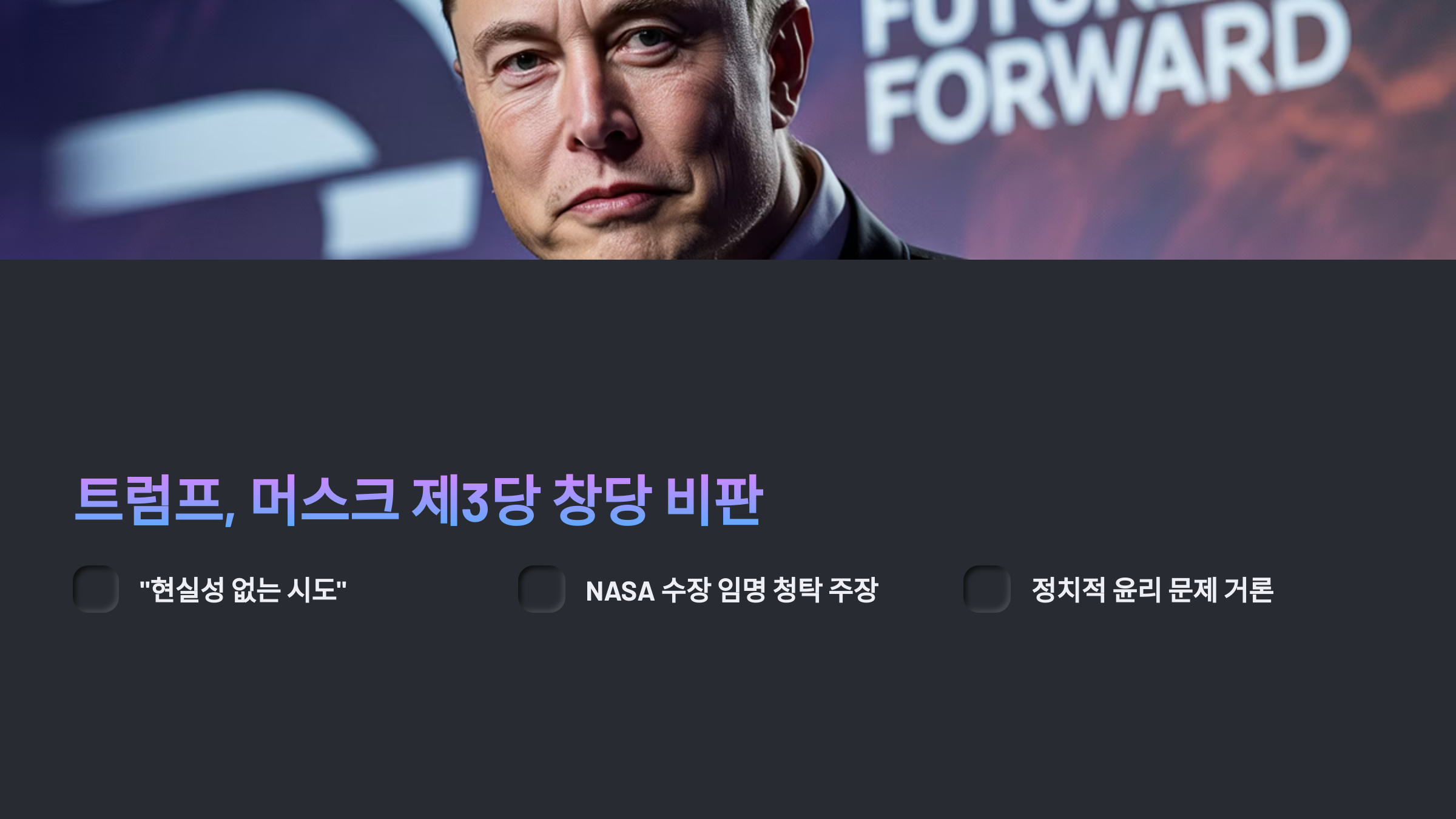특히 머스크가 추진하려는 '제3당 창당'에 대해 "현실성 없는 시도"라고 규정하며,