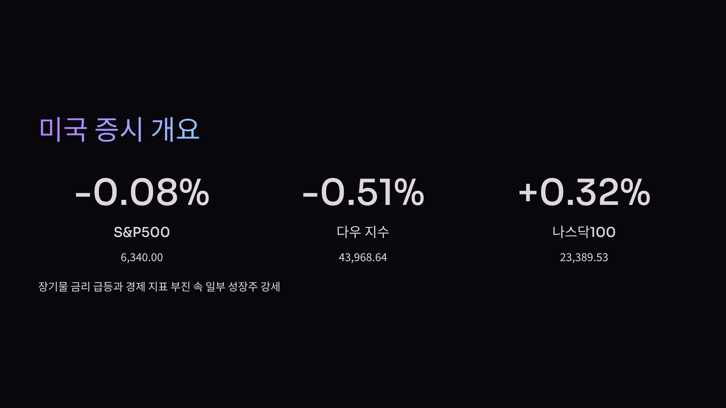 미국 증시 하락 분석: 경기 둔화 우려와 관세 불확실성의 영향어제 미국 증시는 예상보다 부진한 경제 지표와트럼프 대통령의 관세 관련 발언으로 하락 마감했습니다.사상 최고치 경신을 앞두