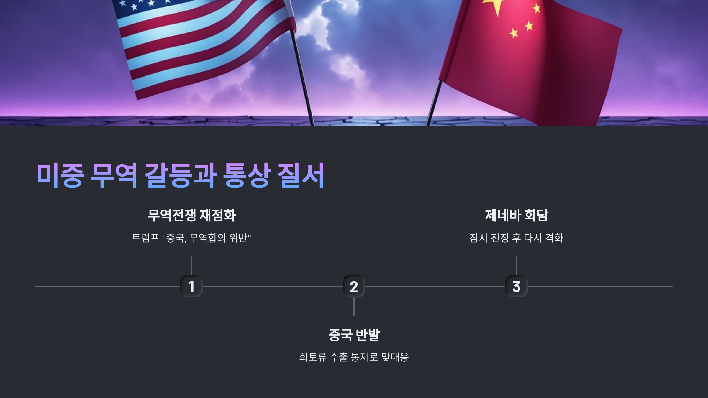 트럼프가 중국의 희토류 수출 통제를 문제 삼으며 다시 갈등이 고조되고 있습니다.