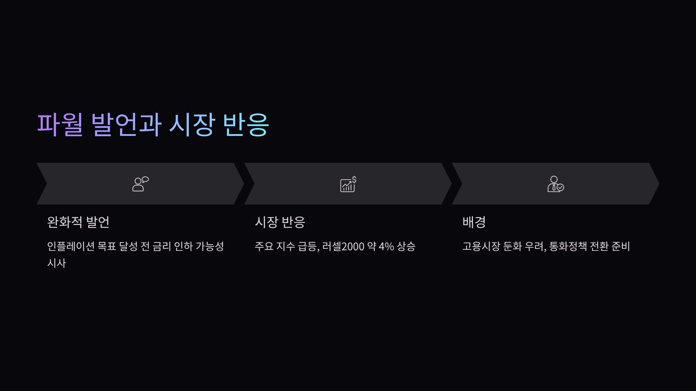 고용시장의 둔화를 우려하며 통화정책 전환을 준비하는 모습으로 해석되었고,