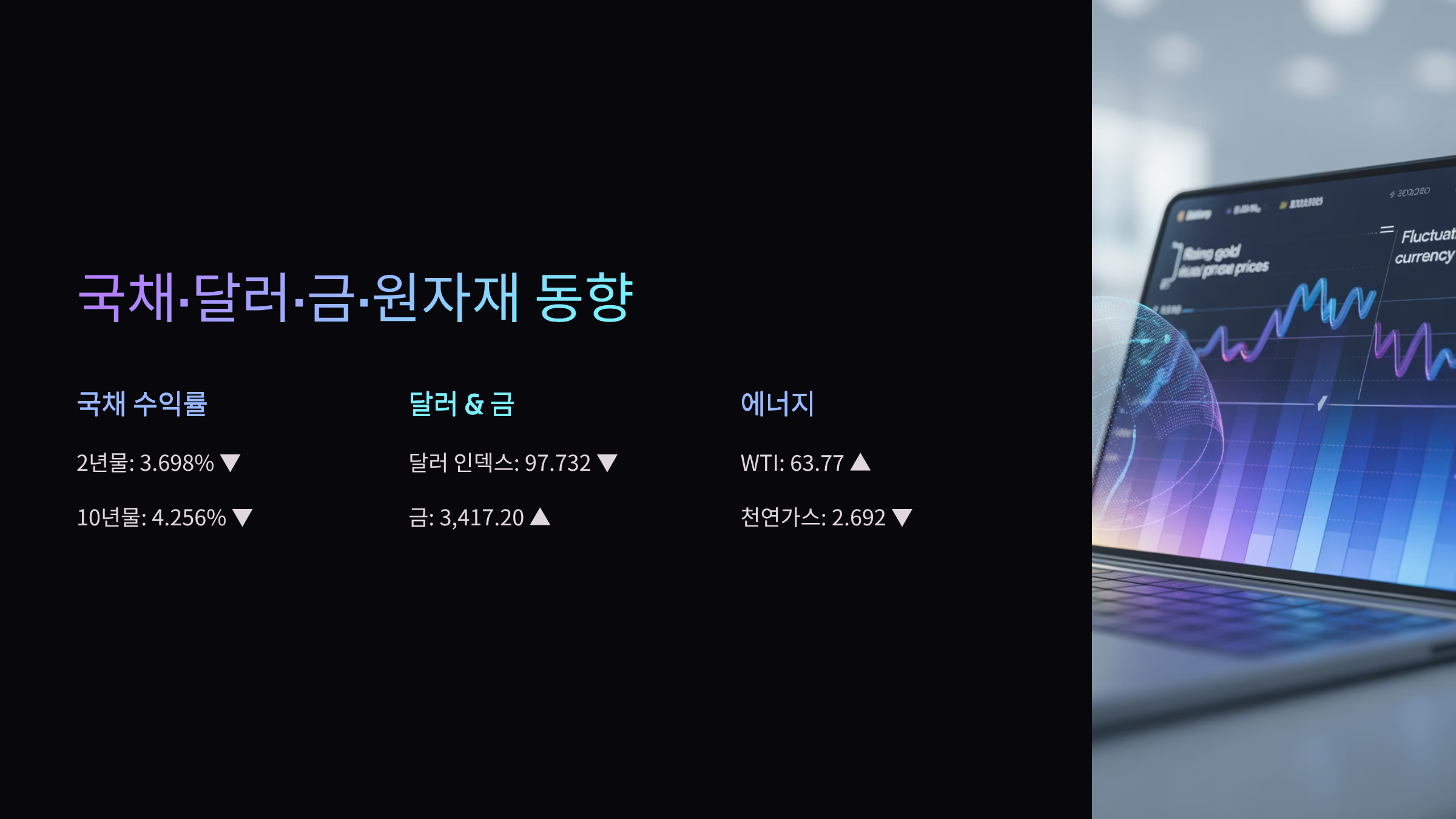 - 미국 국채: 2년물 3.698% ▼ / 10년물 4.256% ▼