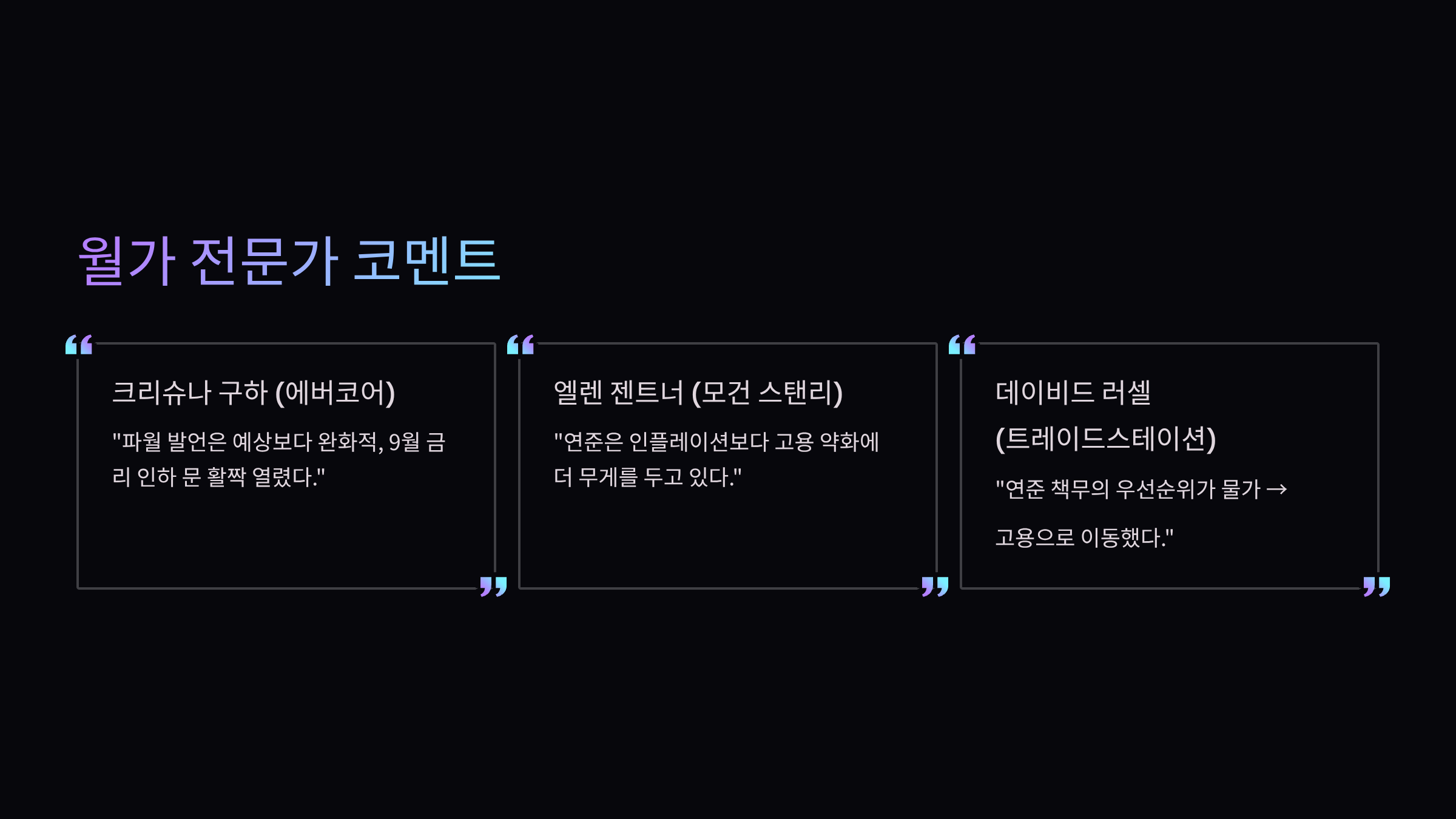 | 엘렌 젠트너 | 모건 스탠리 | “연준은 인플레이션보다 고용 약화에 더 무게를 두고 있다.” |