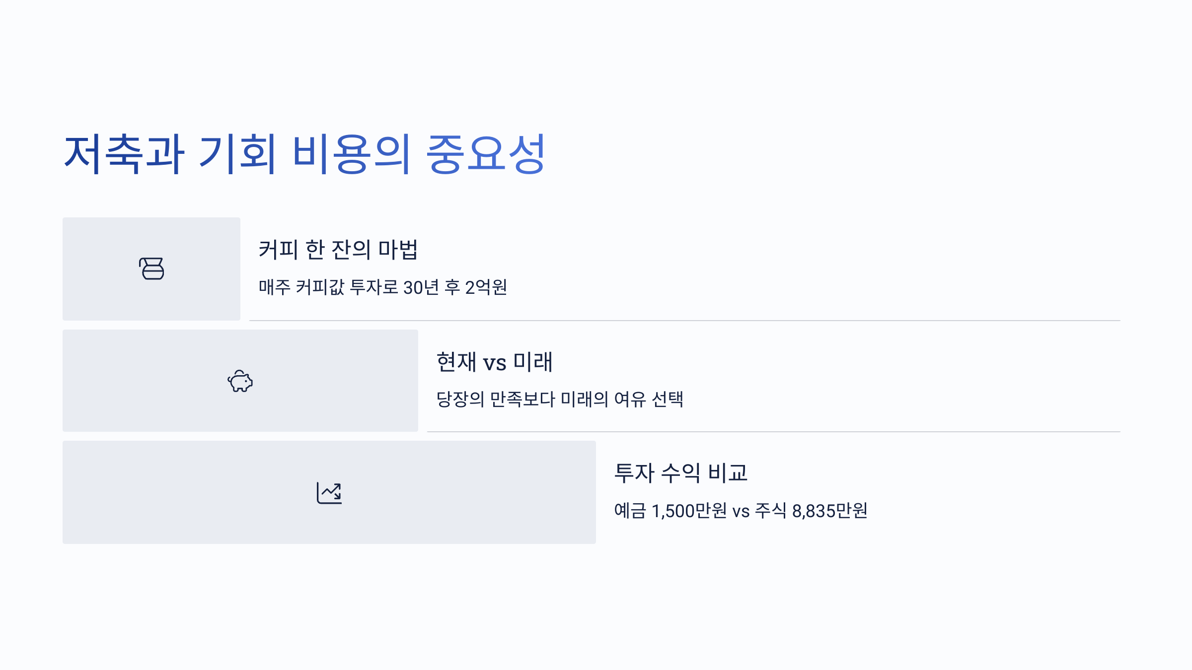 돈을 쓰는 순간, 우리는 그만큼의 '기회'를 버리는 셈이에요.