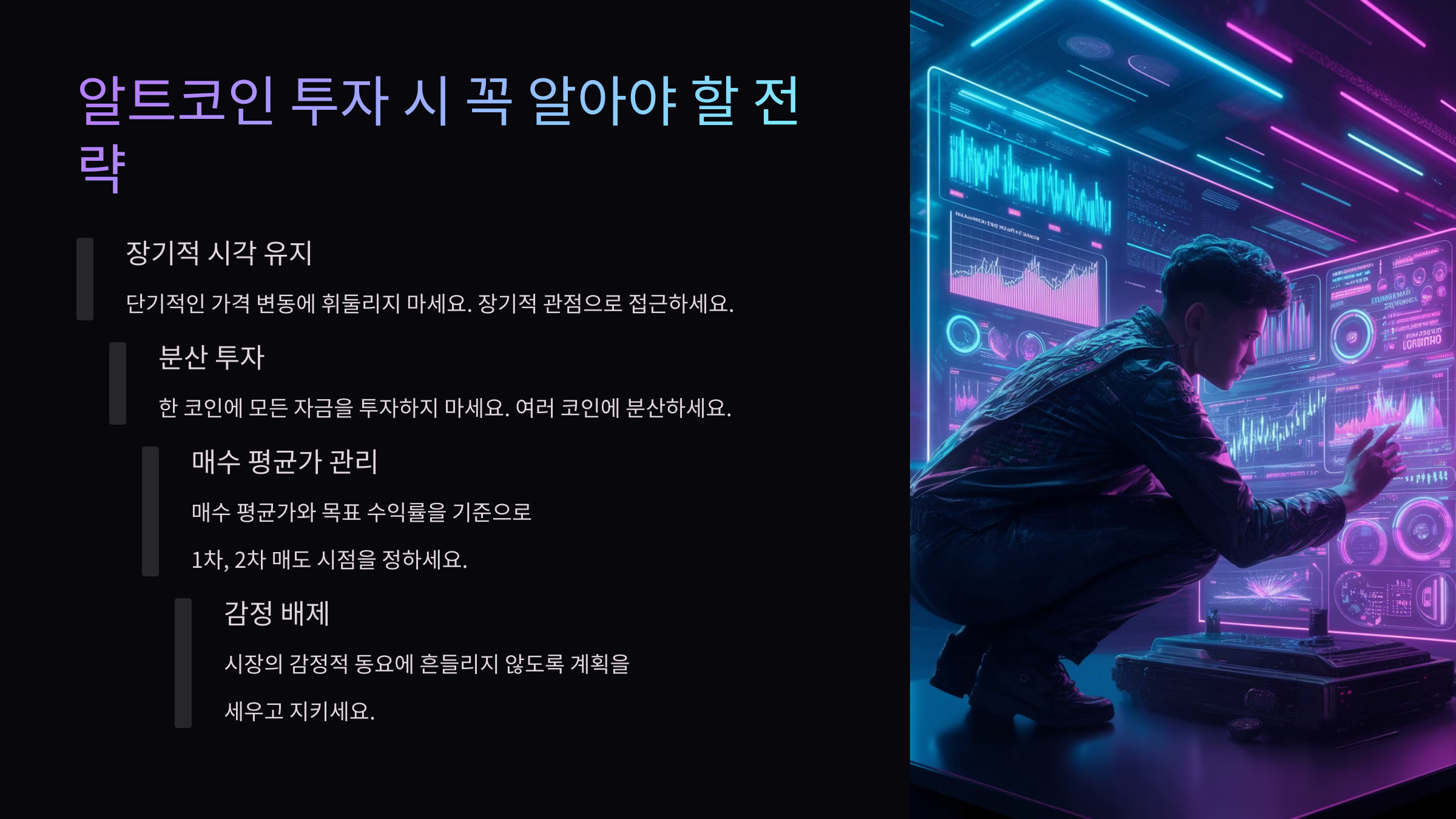 알트코인 투자는 변동성이 크기 때문에 안정적인 전략이 필수입니다.