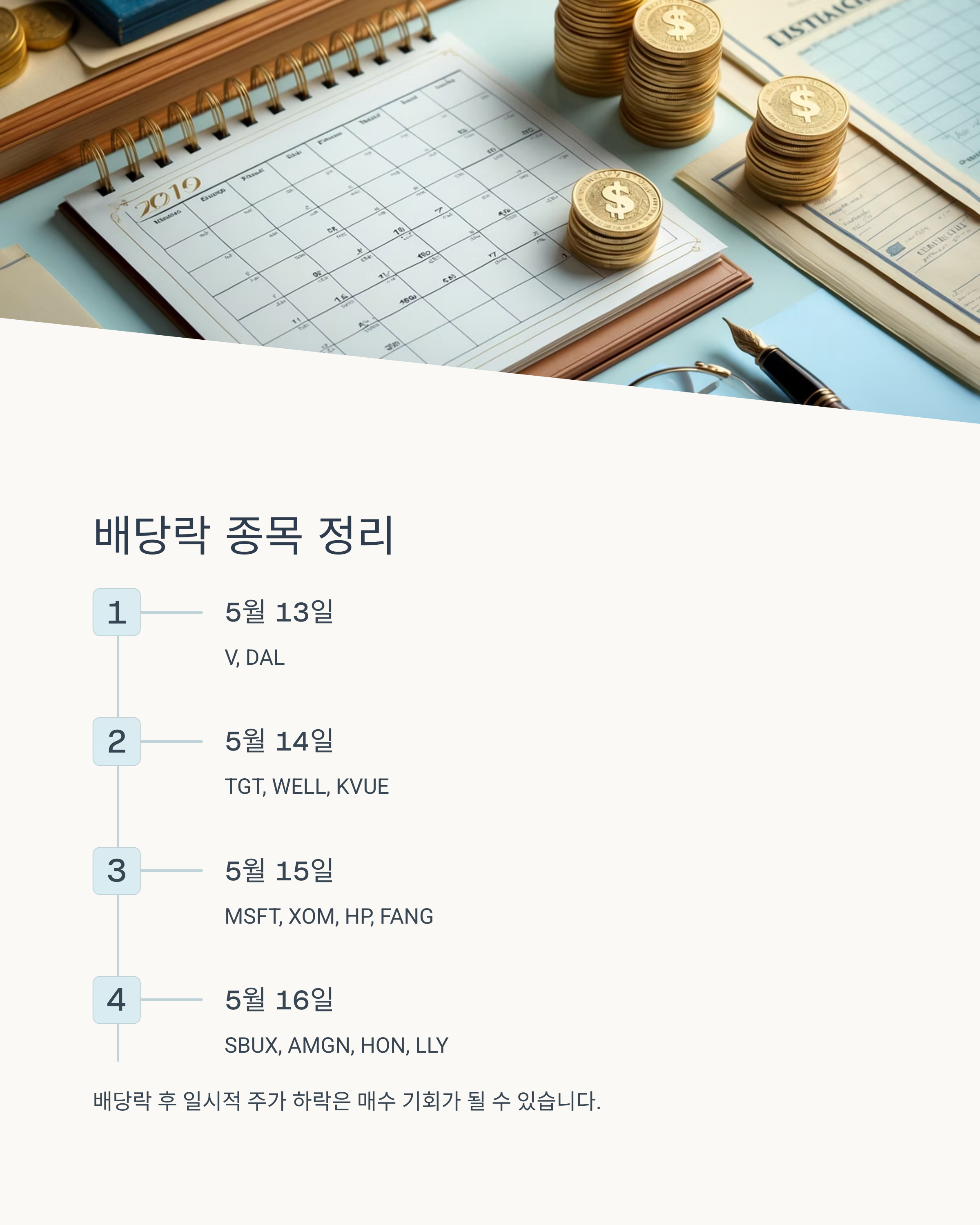 | 5월 16일 | SBUX, AMGN, HON, LLY 등 |