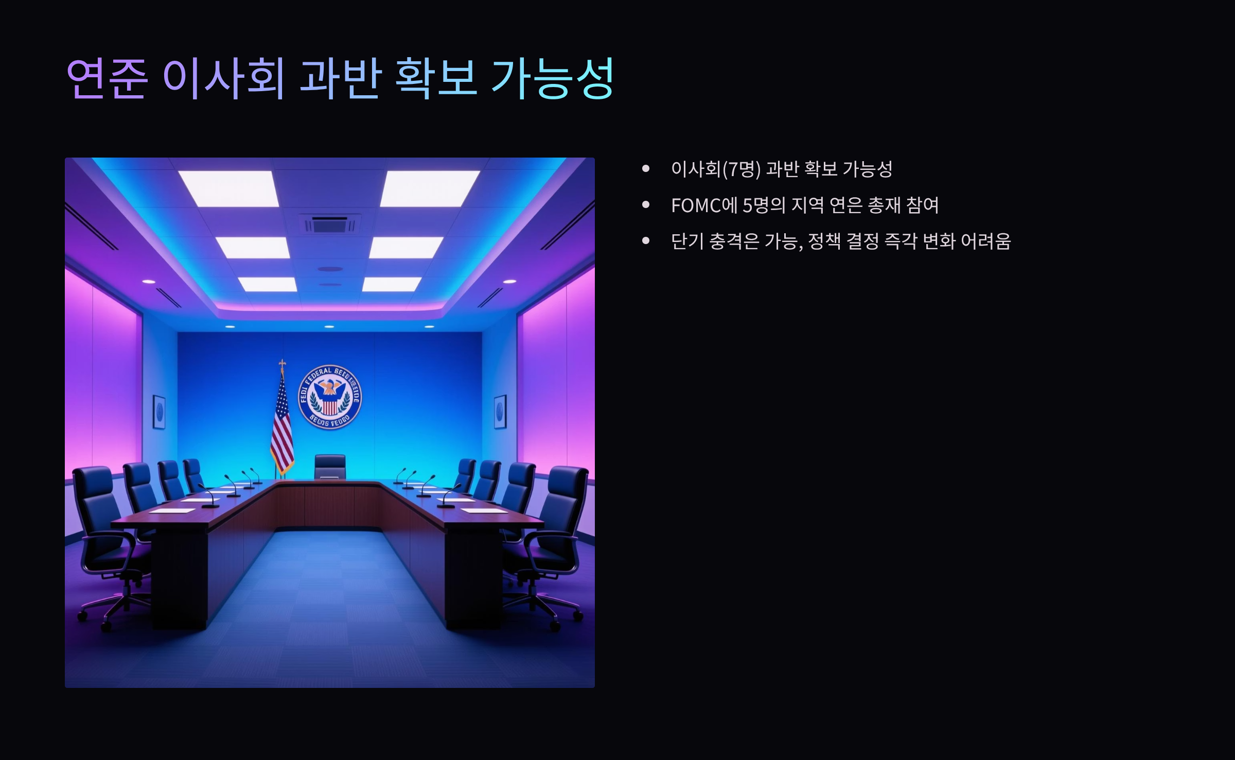 - 연준 이사회 과반 확보 가능성과 FOMC 영향력