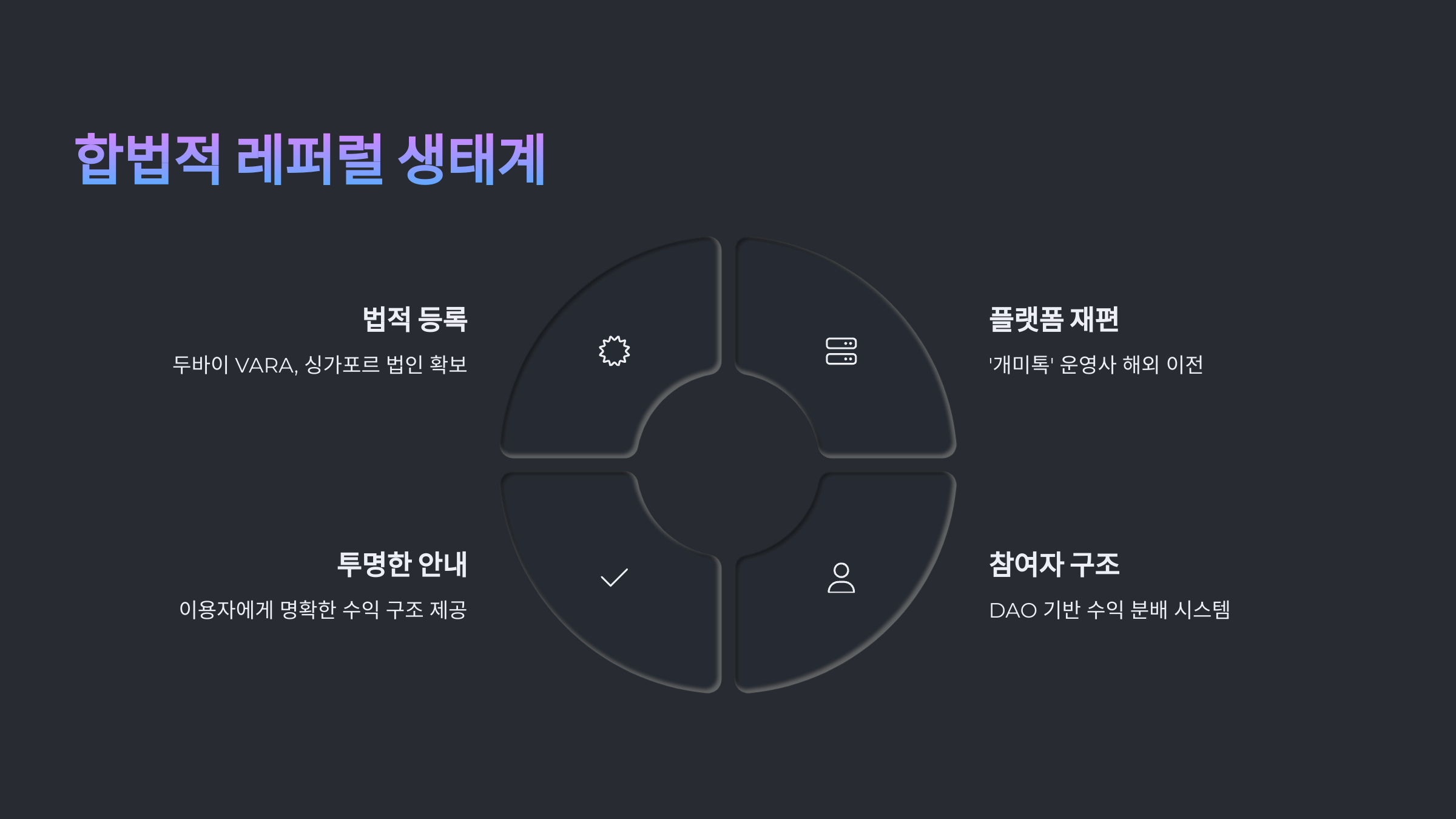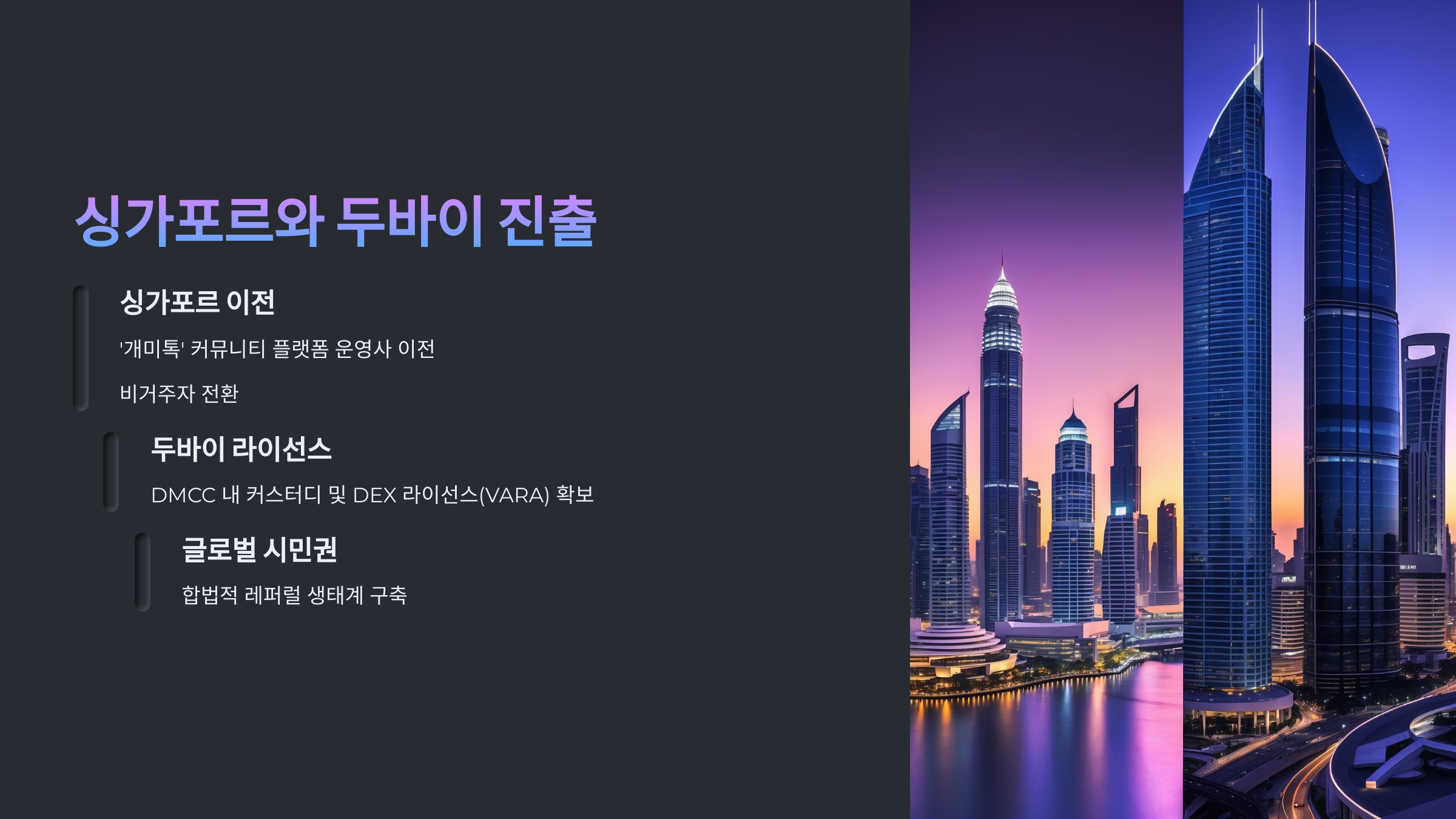 | 법적 등록 | 두바이 VARA, 싱가포르 법인 확보 |