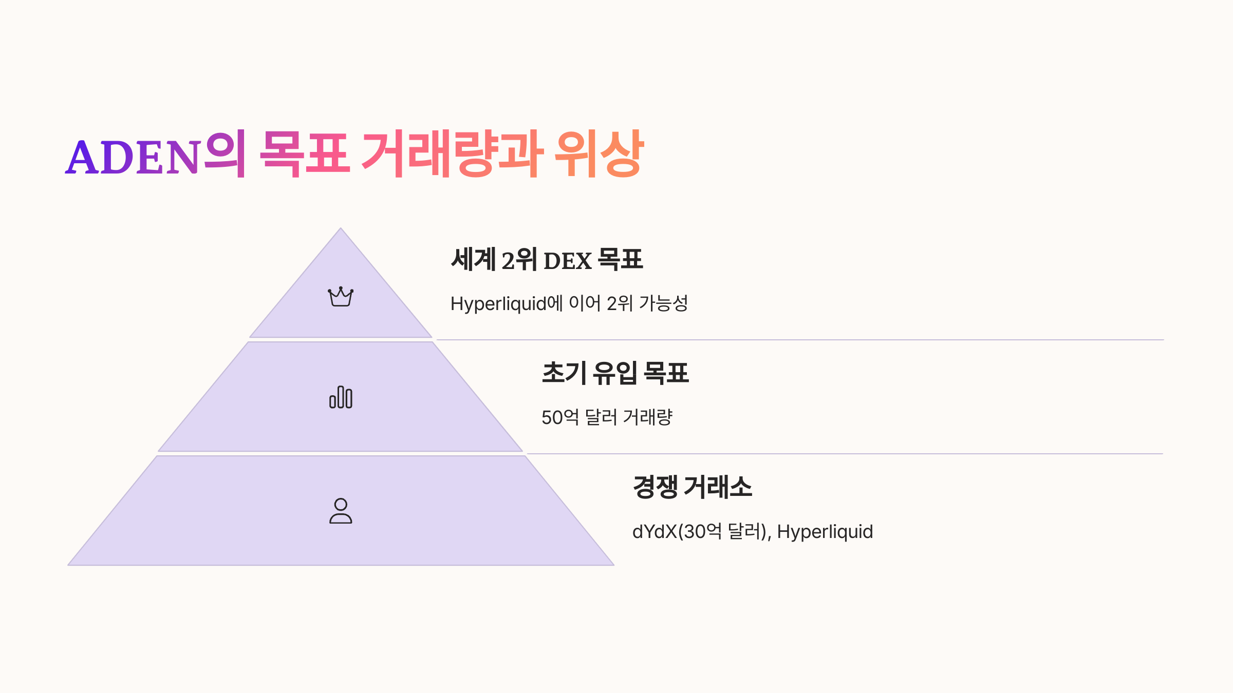 달성 시 ADEN은 Hyperliquid에 이어 세계 2위 탈중앙화 선물 거래소로 부상할 가능성이 있습니다.