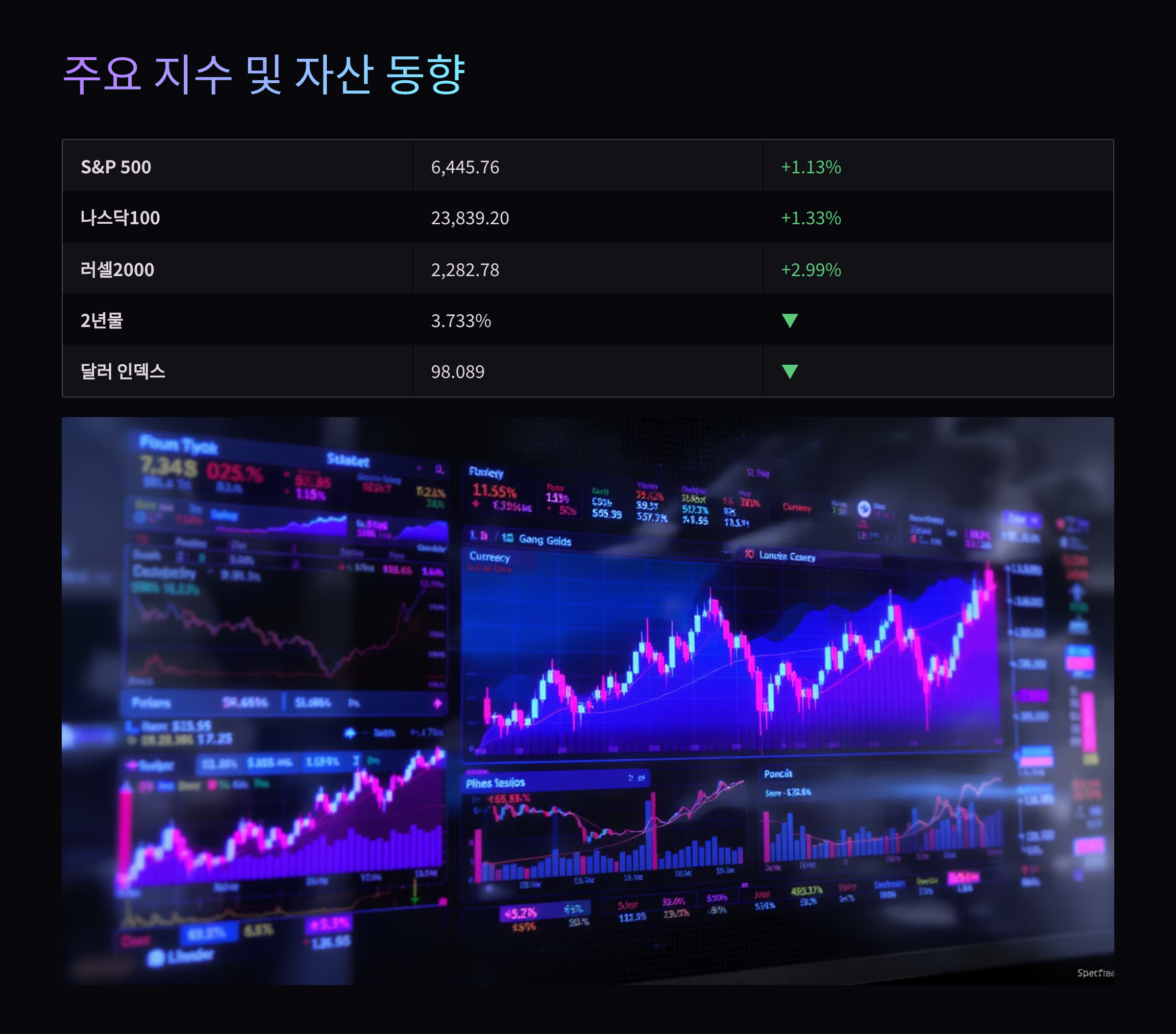 아래 보드는 주요 지수·금리·원자재·달러의 일간 변화를 요약한 것입니다.