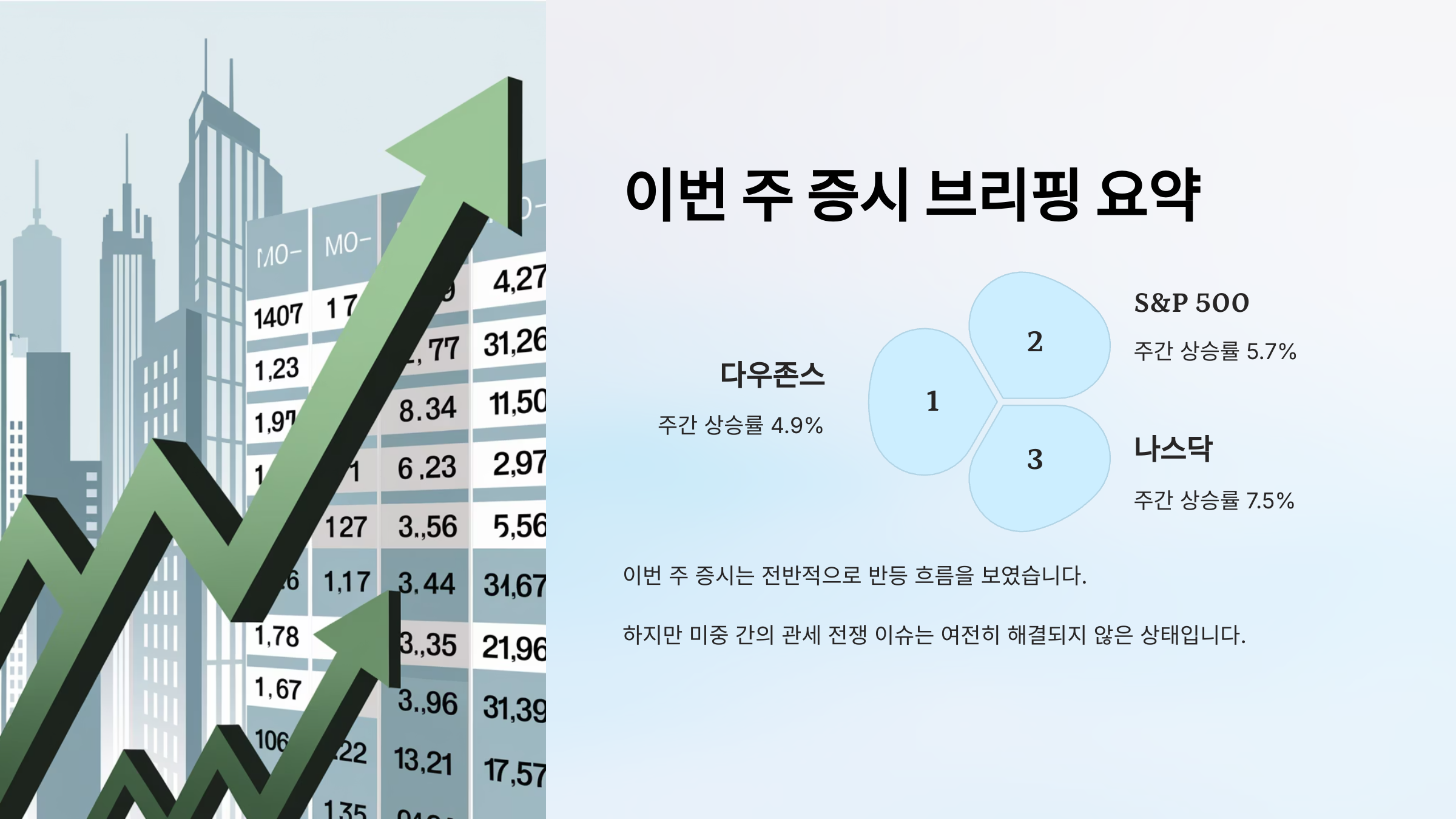 이번 주 글로벌 증시는 미국을 중심으로 큰 폭의 반등을 보여주었습니다.