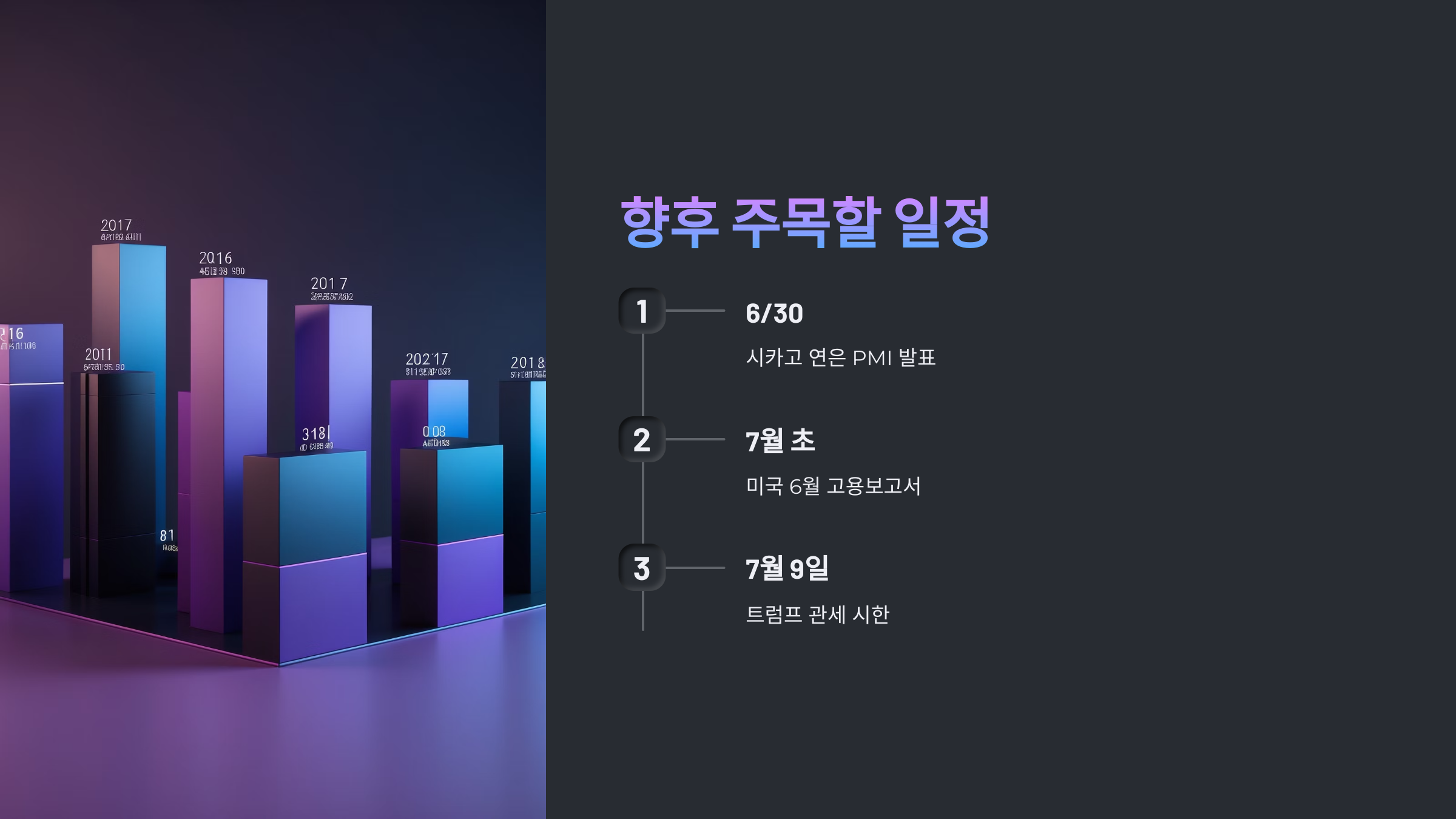- 7월 9일: 트럼프 관세 시한 (연장 또는 조기 집행 가능성)