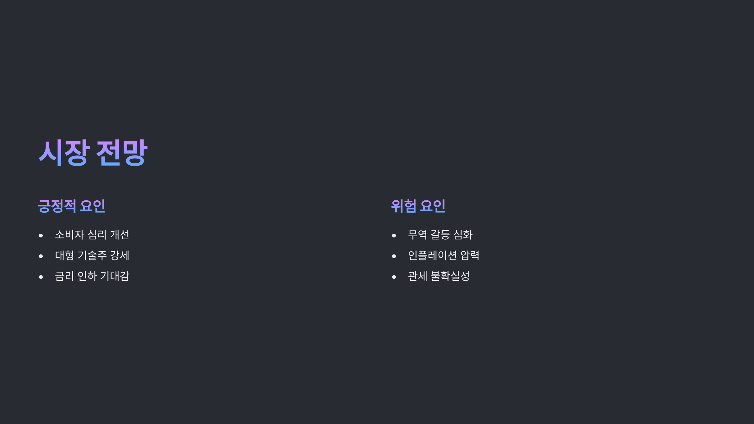 전반적으로 투자자들은 지정학적 이슈보다 펀더멘털 회복과 금리 인하 기대에 더 주목하는 분위기입니다.